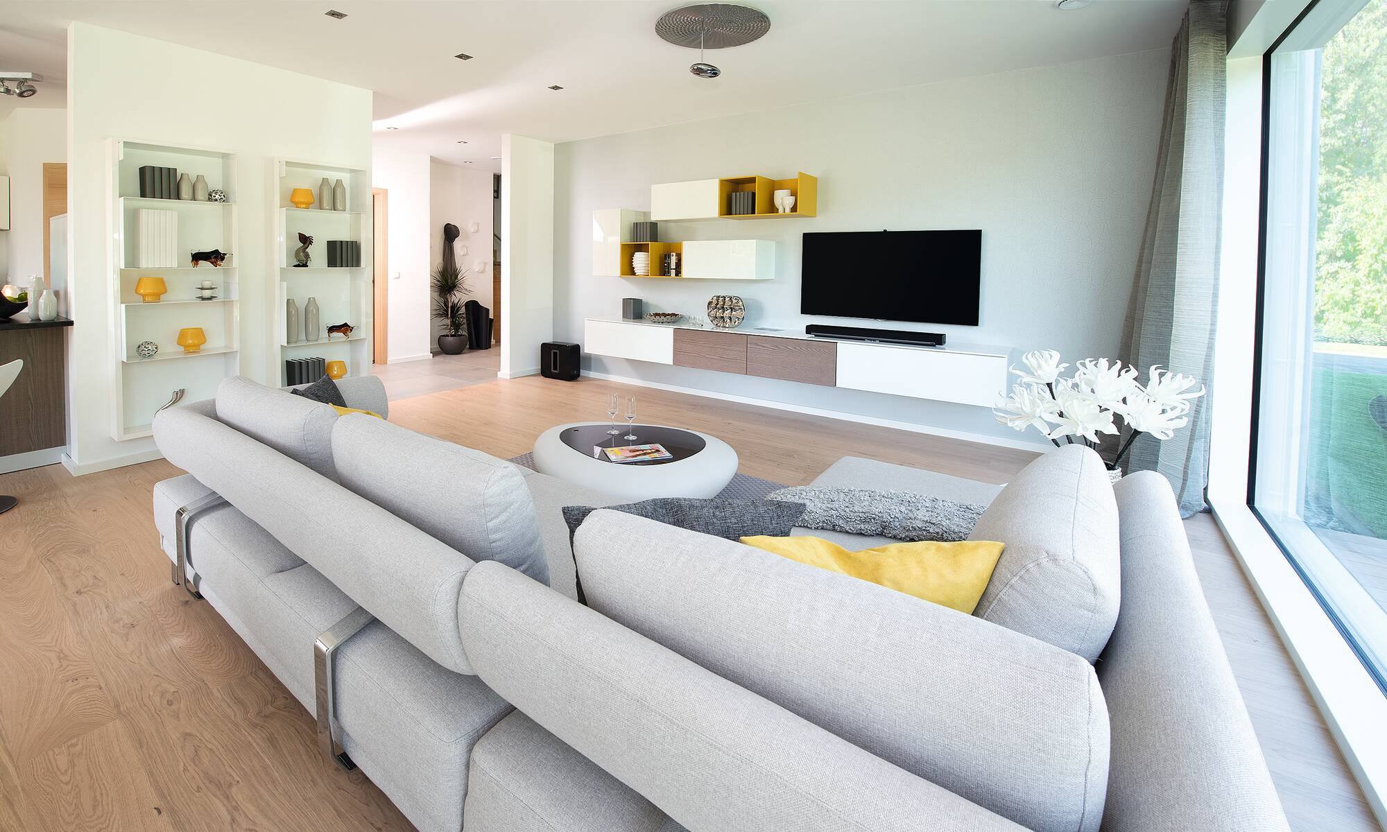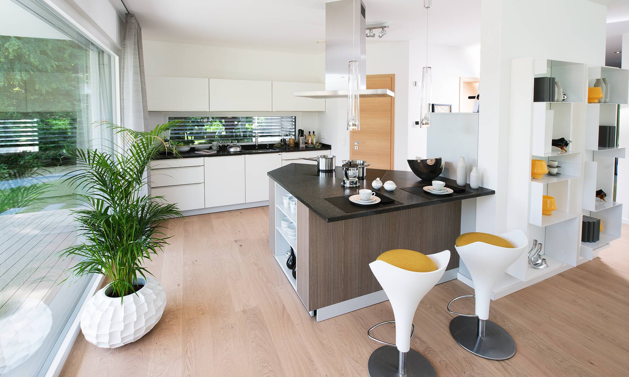 Concernant la conception de cette maison, il s’agit d’une nouvelle maison passive de la série WeberHaus CityLife. La maison d`exposition se situe au World of Living et est la preuve que le design et l'efficacité énergétique ne s’excluent pas mutuellement. La maison passive a pour base l'enveloppe écologique ÖvoNatur Therm laquelle est complétée par des installations techniques innovantes ainsi qu’un système moderne de gestion de la maison. Attique et toiture plate confèrent à celle-ci un caractère de style Bauhaus élégant. Les deux niveaux pleins séduisent par leur l'architecture lumineuse et promettent le plaisir de vivre sur plus de 180 m2.